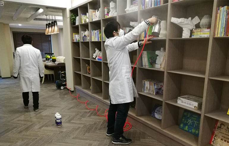 針對(duì)污染源頭、污染物的種類、空間結(jié)構(gòu)特點(diǎn),我公司采用技術(shù)與施工人員采用了高壓噴槍均勻噴涂、高溫氣體熏蒸等兩種施工技術(shù),高壓噴槍噴灑均勻,細(xì)膩,適用于墻面、地板、家具表面的作業(yè),而高溫熏蒸適用于不易滲透的材質(zhì),如板材、地毯等,針對(duì)污染物種類,我公司先后使用了納米光觸媒、甲醛清除劑、異味清除劑、苯清除劑等高效率除污染產(chǎn)品,針對(duì)不同的污染物、污染源,使用不同的產(chǎn)品,對(duì)粉刷的墻面,貼墻紙的墻面,使用利純納米光觸媒,進(jìn)行甲醛清除,這些地方光照量較充足,便于光觸媒對(duì)甲醛的分解,對(duì)于辦公家具、書桌、儲(chǔ)物柜、地板等污染重災(zāi)區(qū),采用甲醛清除劑進(jìn)行處理,針對(duì)地毯使用、裝飾物使用異味清除劑,針對(duì)不同污染物,做分別處理。在每一遍施工中,我們不放過(guò)任何一個(gè)可能釋放甲醛的污染源頭,施工時(shí)輕拿輕放,施工后將所有物品回歸原位,良好的施工態(tài)度得到了相關(guān)負(fù)責(zé)人的肯定。施工取得了圓滿成功。
