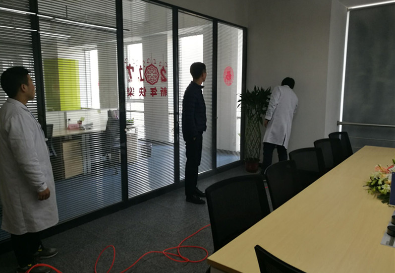大發(fā)地產(chǎn)(寧波凱旸置業(yè))全新裝修,裝修完工時(shí)間短,另外辦公家具為全新,進(jìn)入室內(nèi)油漆味明顯,公司員工對(duì)此反應(yīng)強(qiáng)烈,我公司在接受寧波凱暘置業(yè)委托后,派專業(yè)工程師上門(mén)查看現(xiàn)場(chǎng),分析污染成因,并未其制定了科學(xué)的室內(nèi)空氣整體凈化治理的施工方案,得到大發(fā)地產(chǎn)公司領(lǐng)導(dǎo)的認(rèn)可后,我公司派出治理經(jīng)驗(yàn)豐富的工程師和施工人員對(duì)室內(nèi)辦公環(huán)境進(jìn)行全面凈化,針對(duì)墻壁涂料、地毯以及辦公家具等污染源,公司具有針對(duì)性利用納米光觸媒、甲醛清除、苯清除劑等分別進(jìn)行處理,施工是采用高壓霧化的狀態(tài)下進(jìn)行噴涂,讓甲醛、苯系物和TVOC的全面無(wú)死角得到清除。